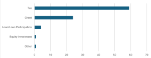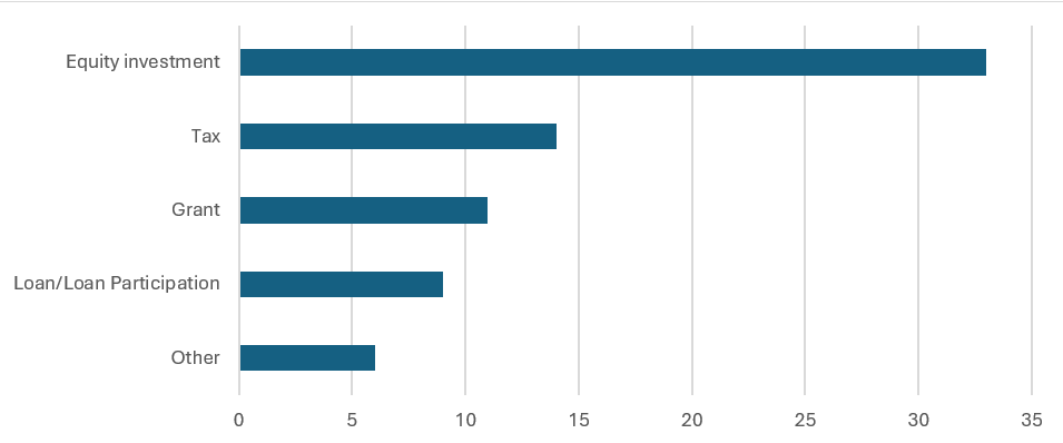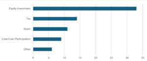 Naturally, the most common way for states to incentivize venture capital is through encouraging equity investment, which constitutes over 45% of VC incentives in the US. Figure 2 shows that the remaining VC incentives are distributed somewhat evenly among the other program types: tax, grants, and loans. Equity investments are usually offered to startups themselves while other program types are available for venture capitalists to encourage investment into new companies of all stages.